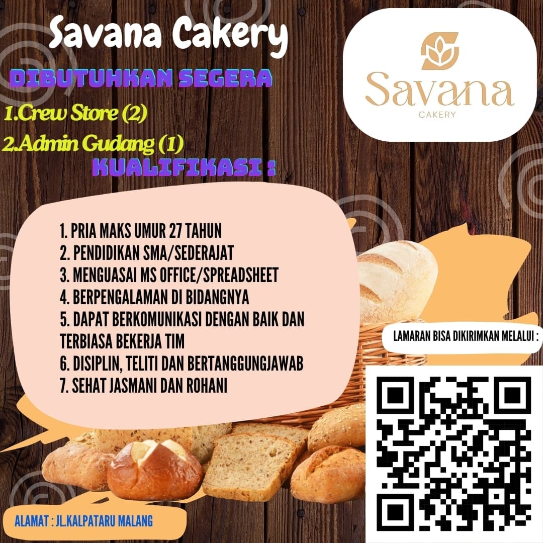 Savana Cakery mengadakan rekrutmen karyawan baru untuk mengisi posisi sebagai berikut :